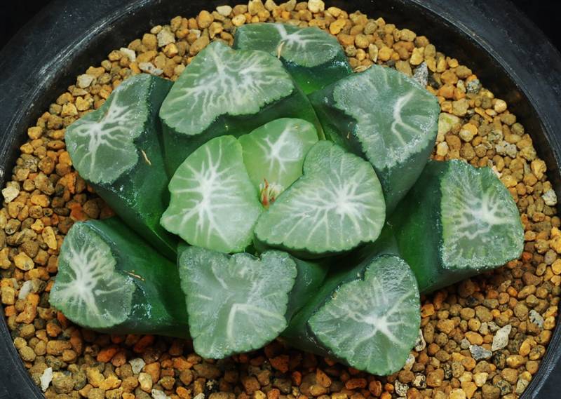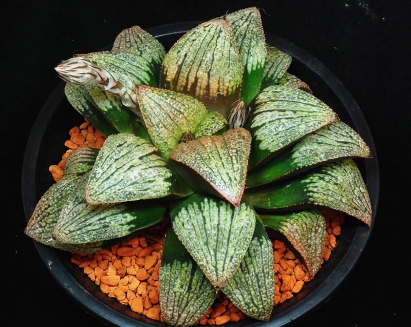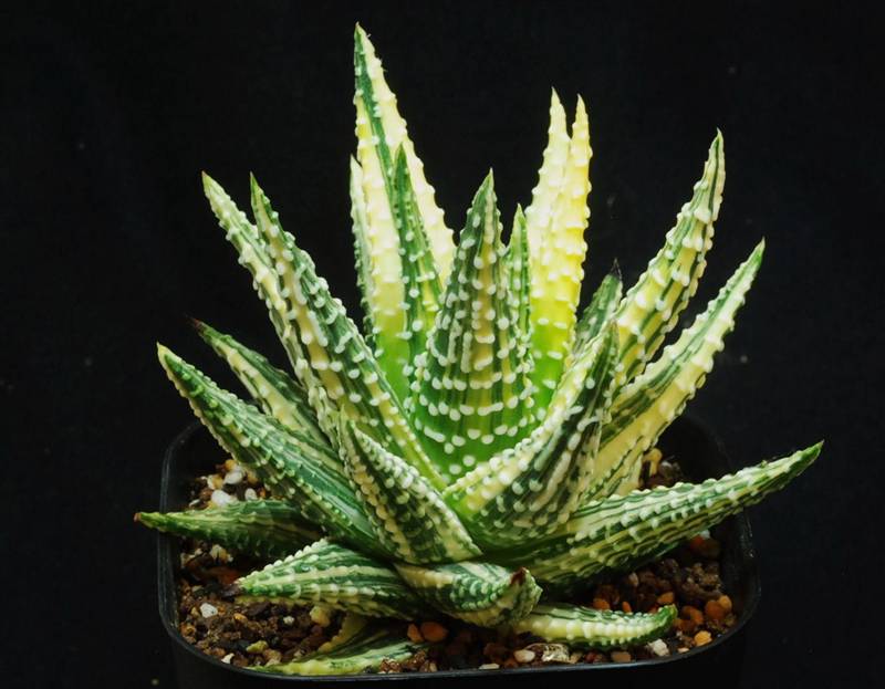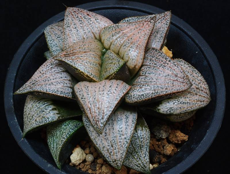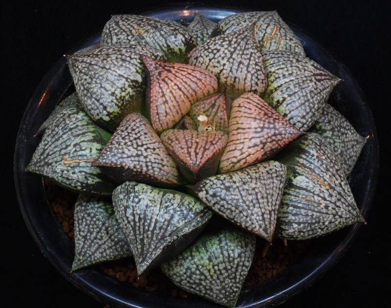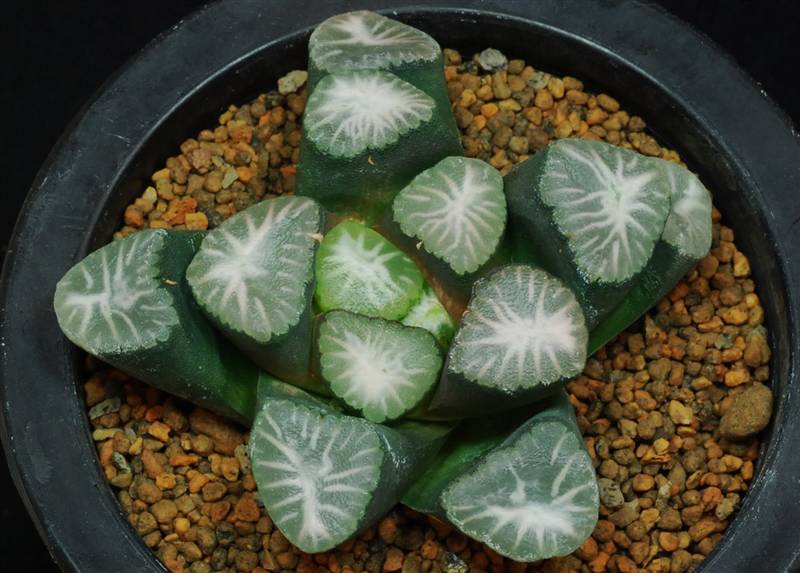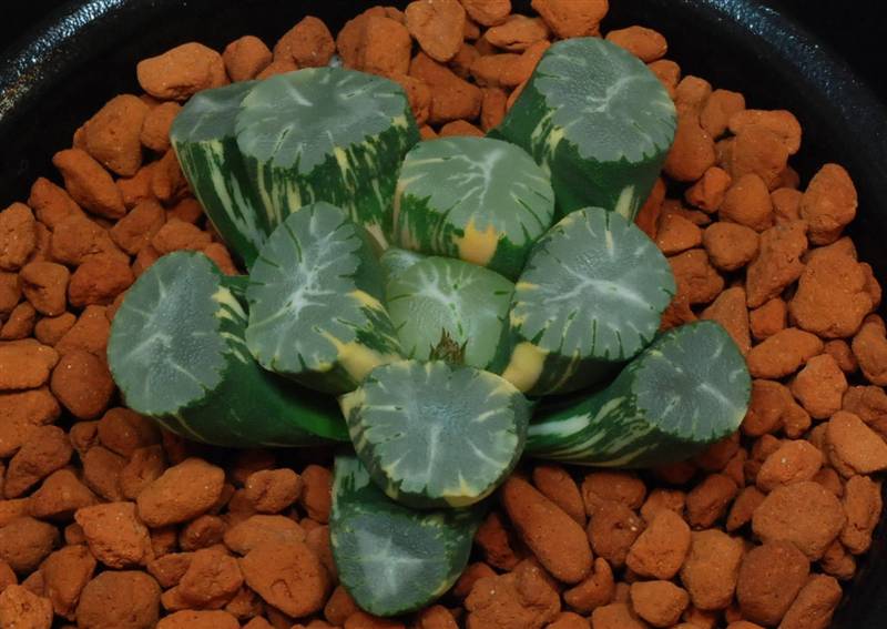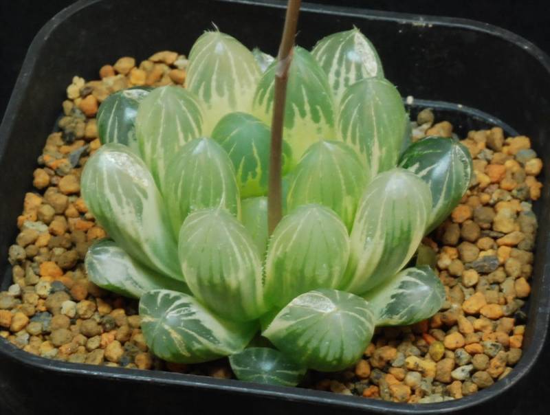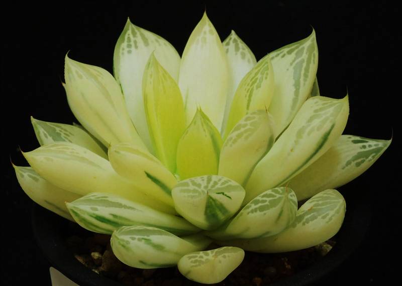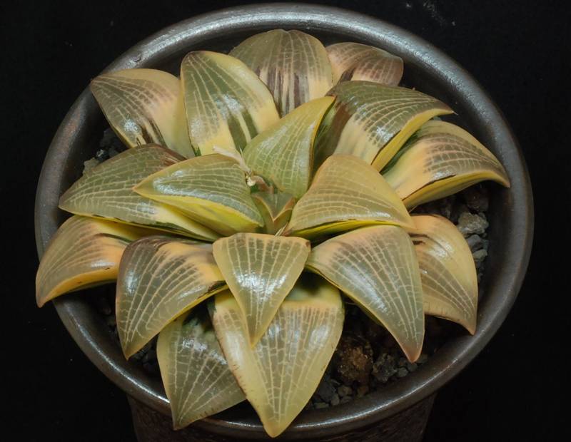 つまり「斑入りだから高評価とする」のではなく、あるいは市場価格の高低によって評価するのではなく、園芸作品として審美眼的にきれいかどうか、見事かどうか、で評価するからではないかと思います。これはある意味、健全な趣向、感覚と言えます。今回の“リビダNo.1”なども非常に小型で一見地味な存在ですが、見事な裏窓が評価されて入賞しています。