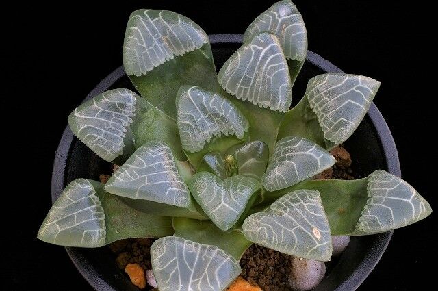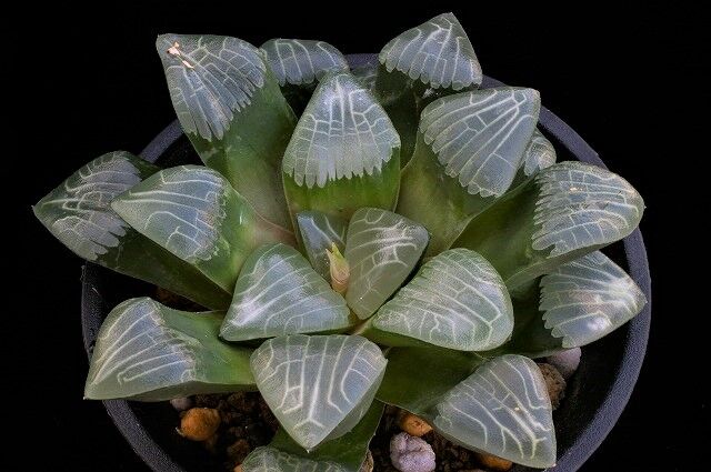 昔から玉扇、万象、それにコレクタがハオルシア園芸の最高峰と言われていた。この3種は窓の紋様の変化が大きく、紋様が個体ごとに大きく異なるのはもちろん、葉ごとにも微妙に、時には大きく異なり、新しい葉が出るたびにその変化を楽しむことができる。その点でオモトやイワヒバなどの葉紋園芸全体でも最高峰と言っても過言ではない。