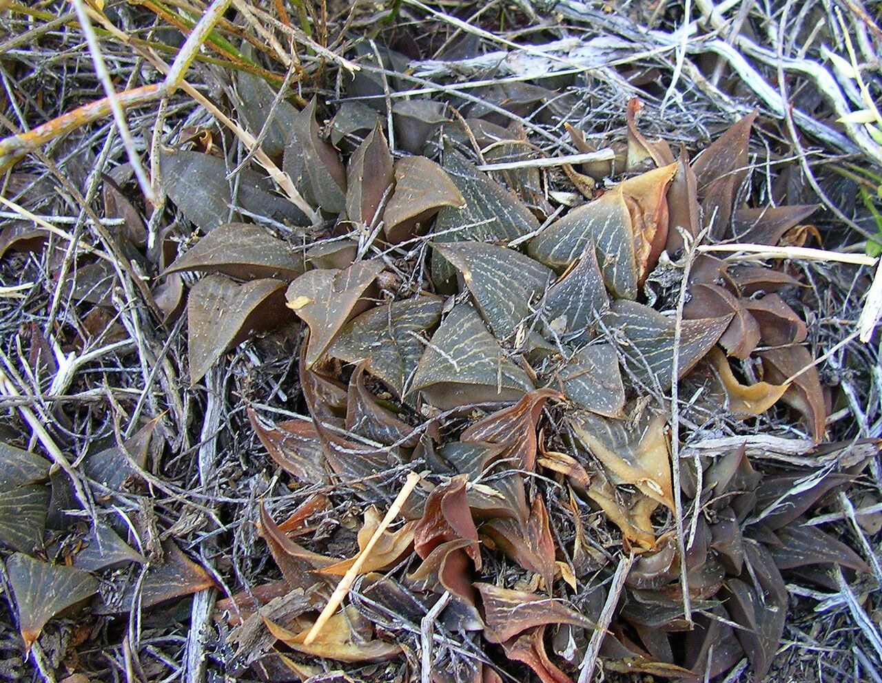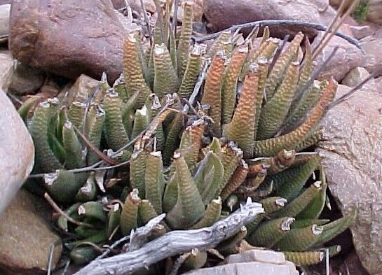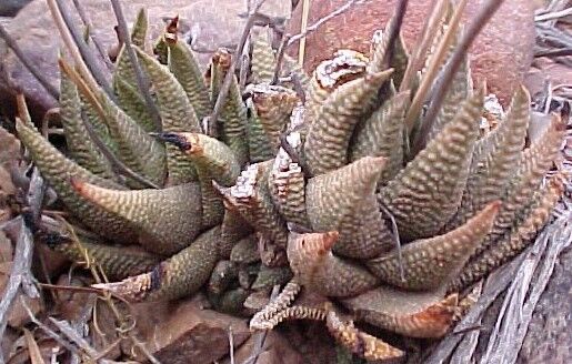 Fishriver)は葉が3列ではなく5列に並ぶ。H. nigraとH, tessellataはrhizome (地下茎の一種) で繁殖するがH. viscosaはrhizomeを作らない。